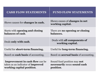 Explain Difference Between Cash Flow and Fund Flow Statement